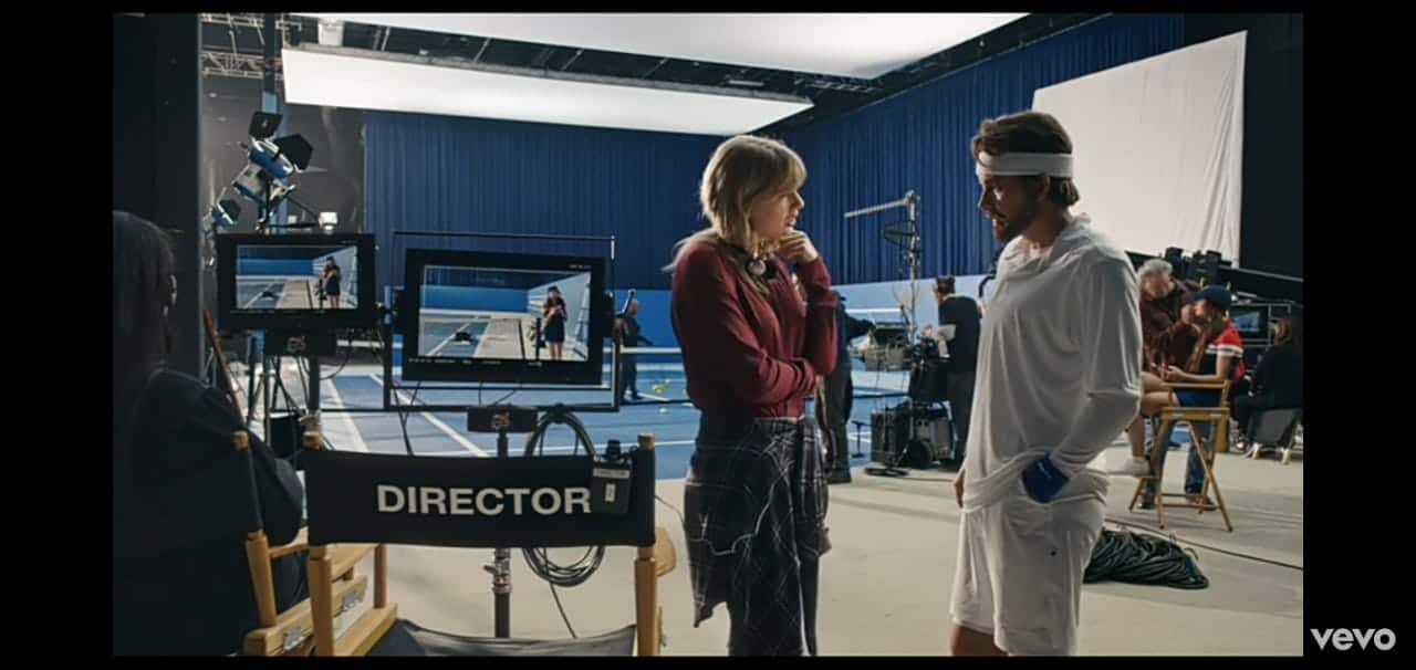 In the very next scene the Man is shown playing tennis all aggressively, breaking the racket, showing fingers, lying on the ground and then Taylor Swift says cut…. She is shown being the director . When the Man asks if he did good she asks him to be more sexier and more likeable but says well done to Loren who was just standing at the side which kind of shows ‘ if men were treated like women ‘ . Women are never considered good enough but men get the praise for not doing anything.